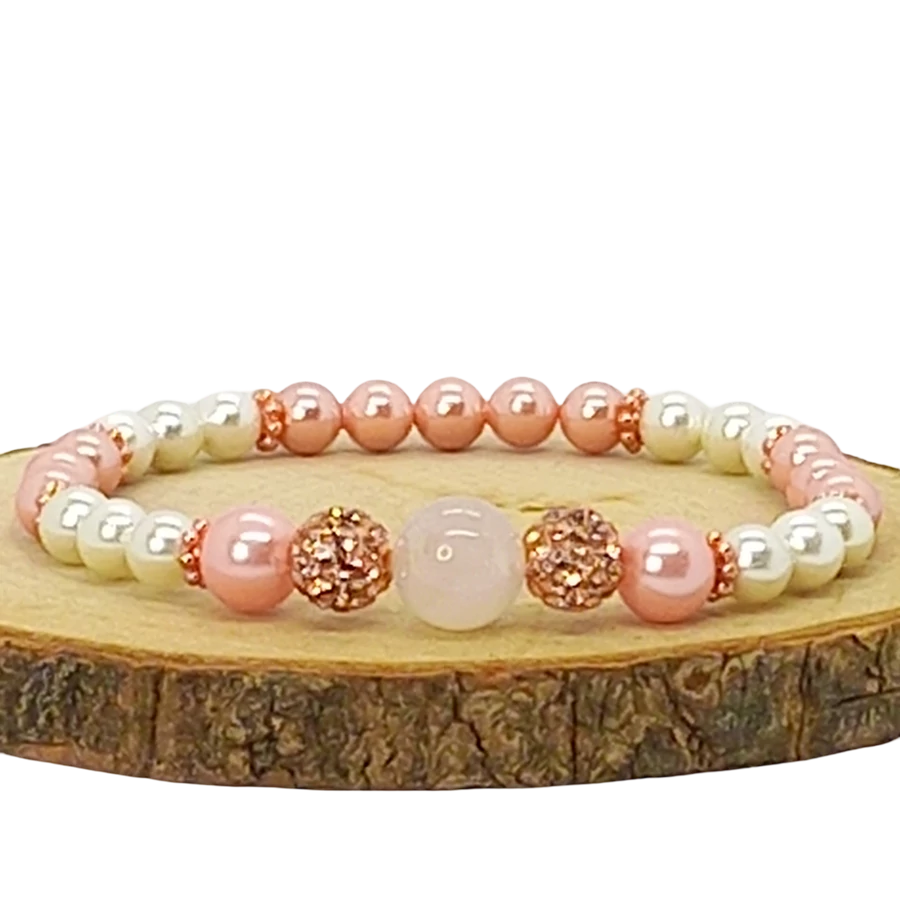 Aura kvarc - shell pearl karkötő pave gömb dísszel