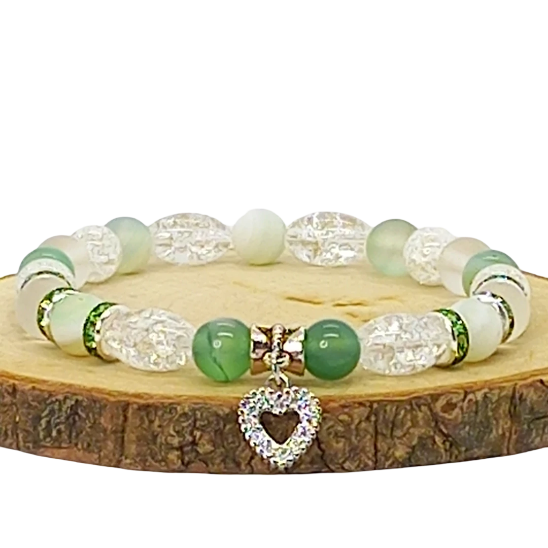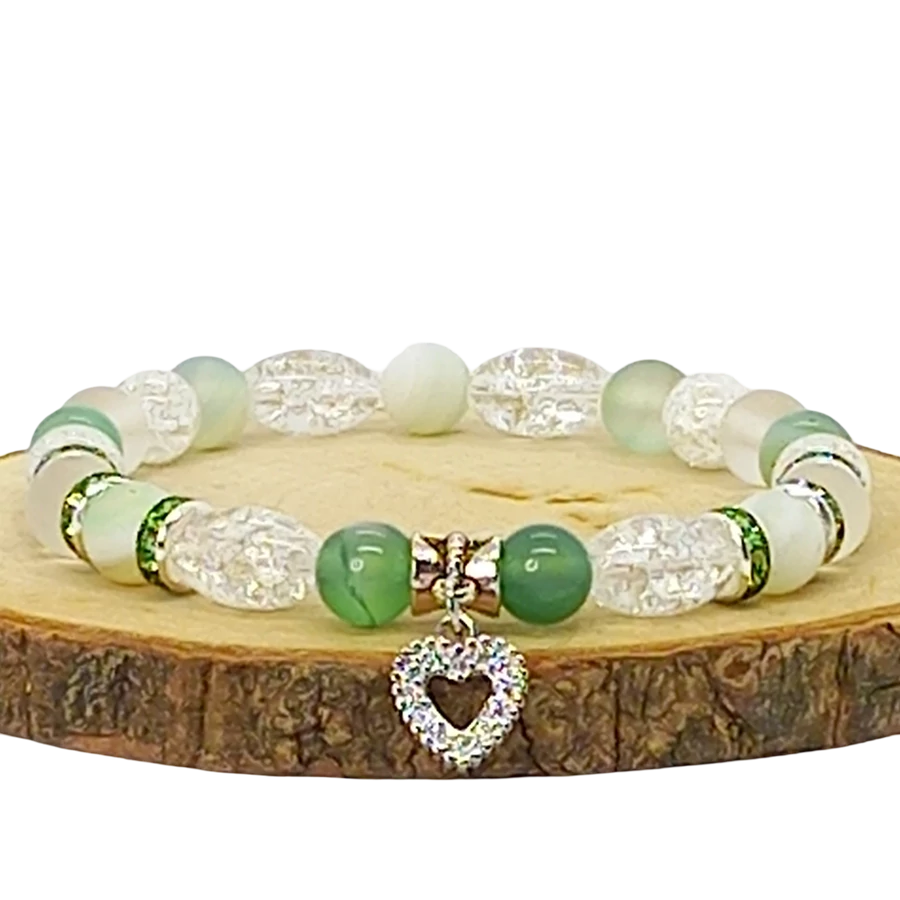 Matt hegyikristály - achát - roppantott kristály karkötő cirkónia strasszos szív medállal